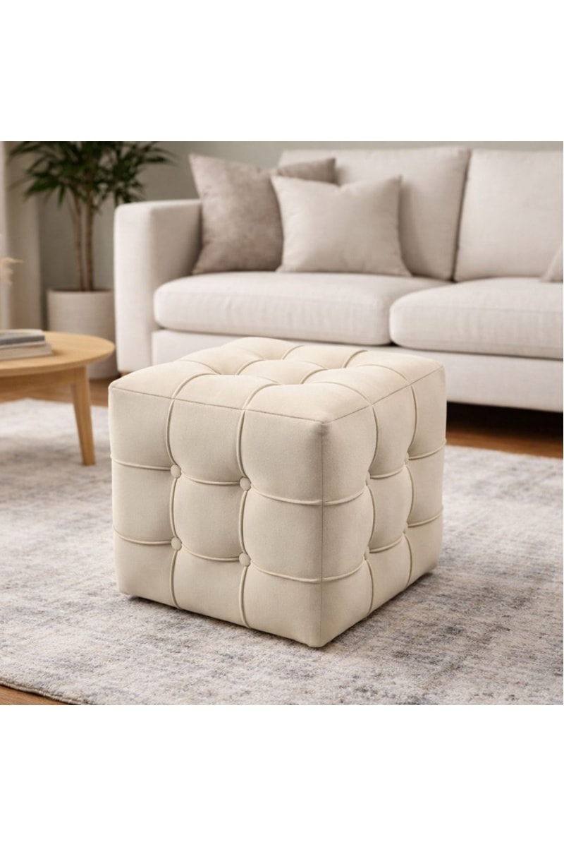 Pouf - Crème - En tissu velours