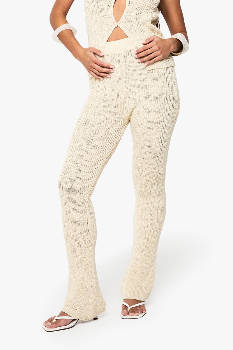 Pantalon flare taille haute - Beige
