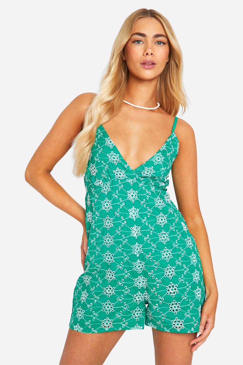 Combishort en broderie anglaise - Vert