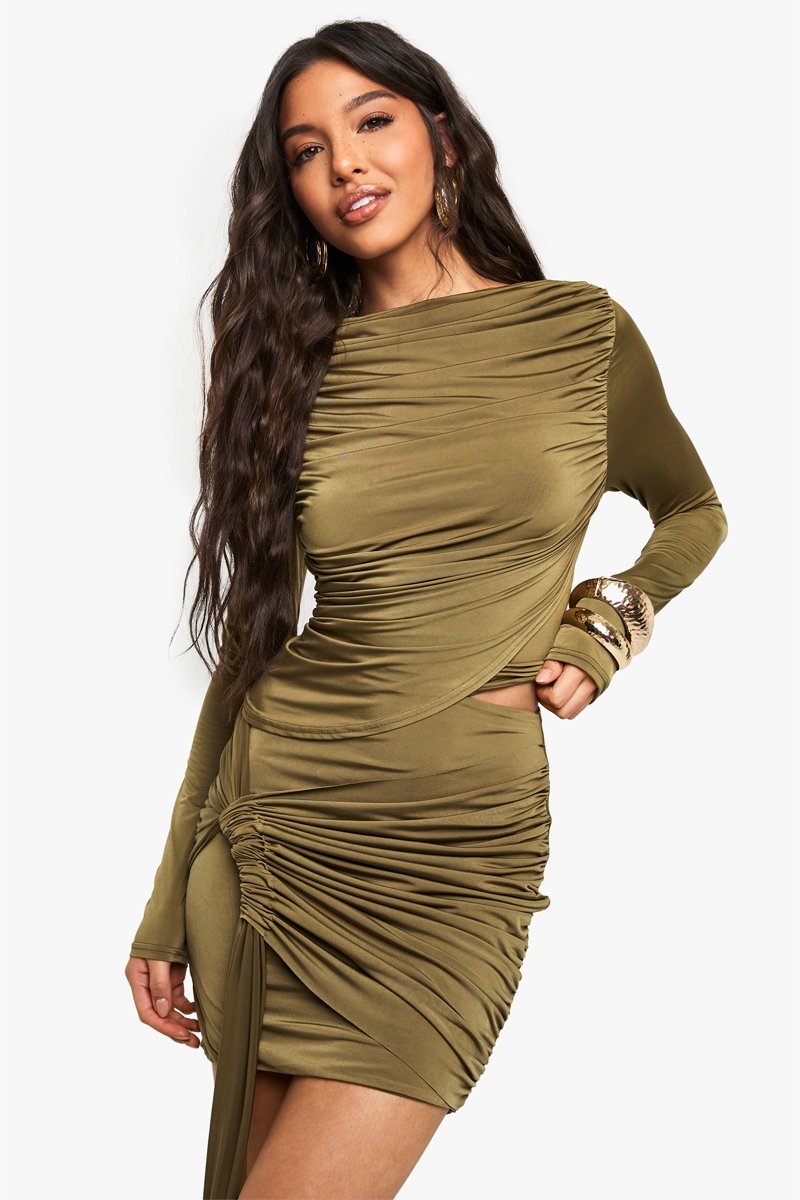 Empiècement drapé et lien devant.