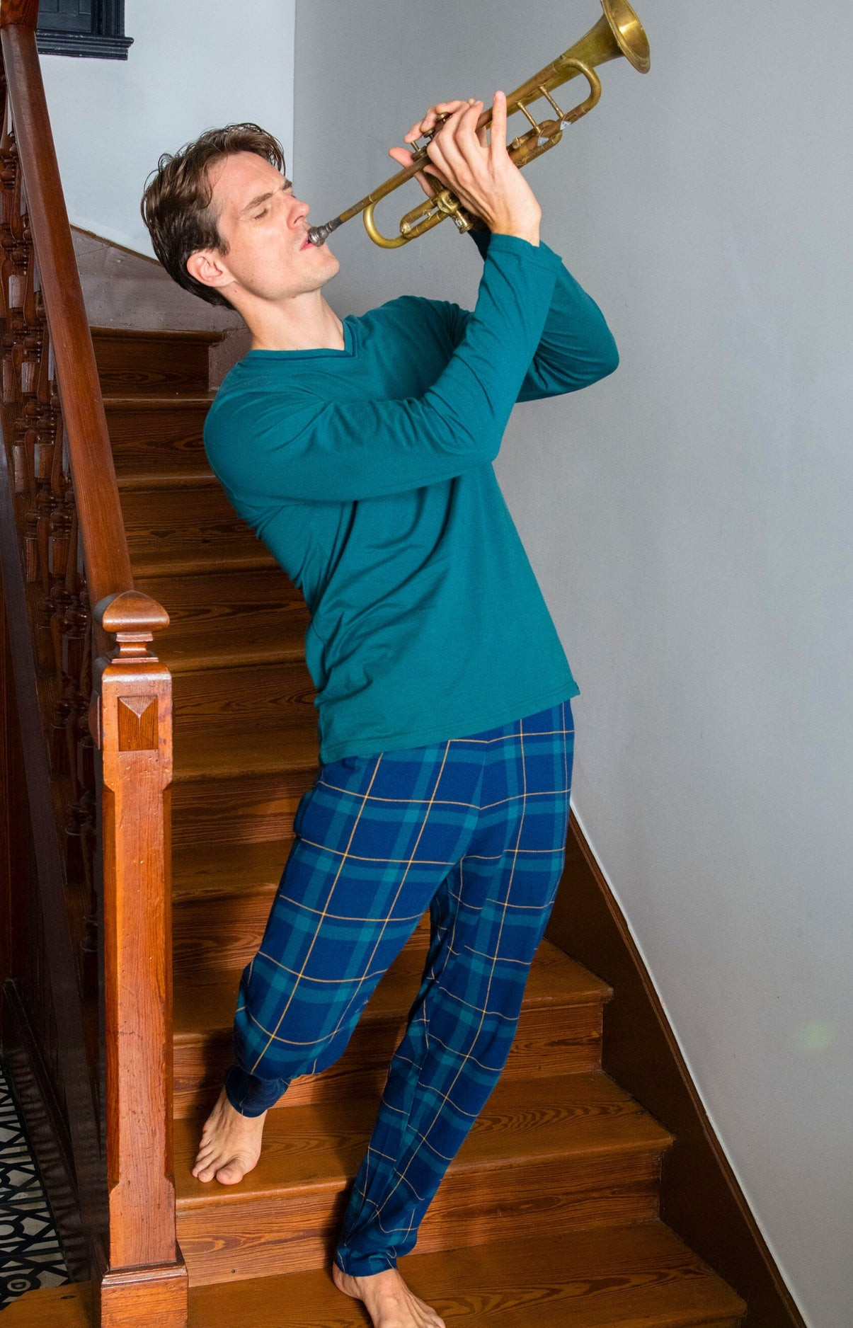 - Pantalon de pyjama avec ceinture élastiquée, cordon de serrage et 2 poches côtés en bleu marine