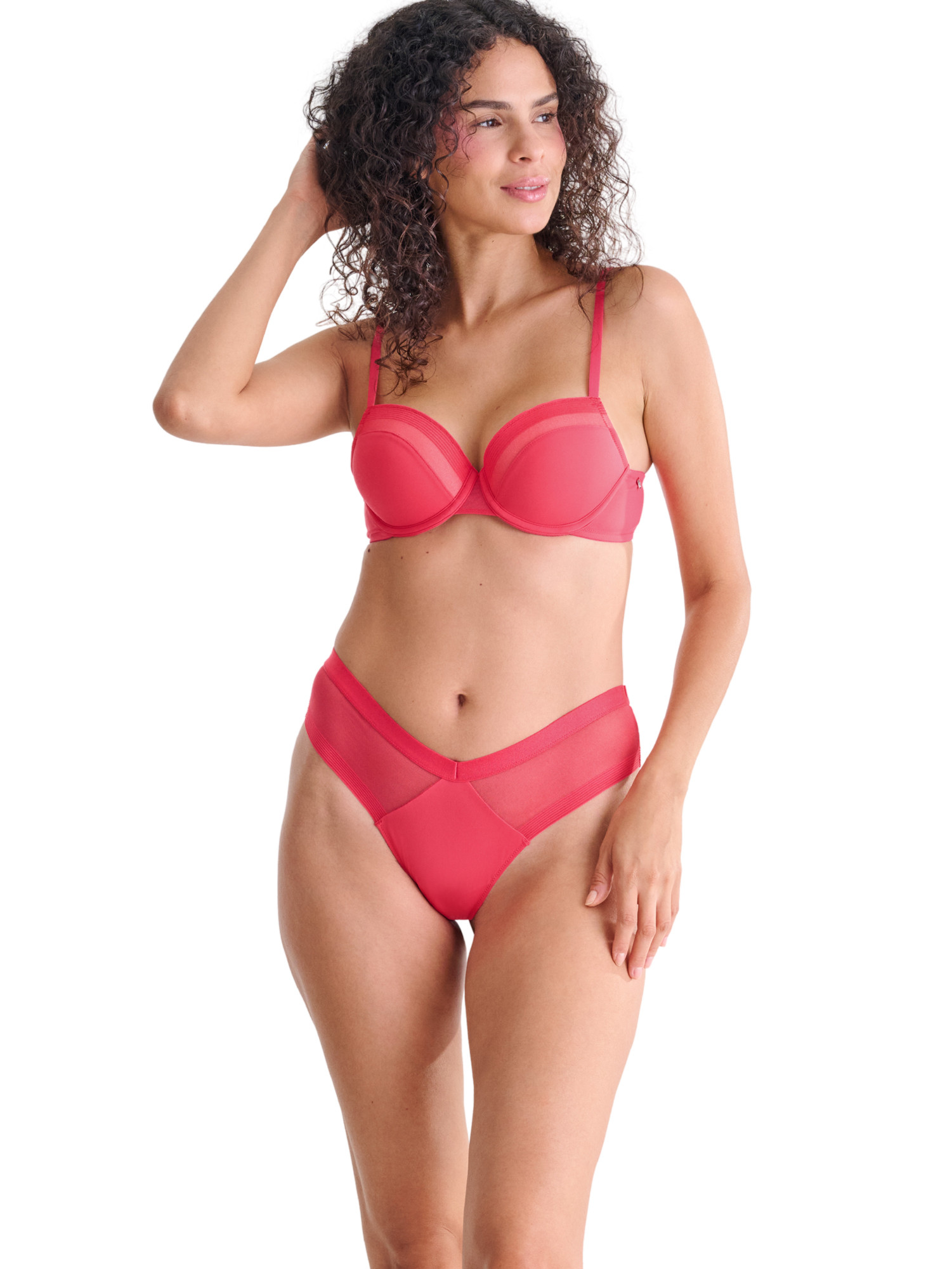 Soutien-gorge préformé dans un design moderne pour un confort quotidien. Détails en tulle et bordure rayée sur les bonnets, bonnets et armatures cousus pour un ajustement parfait. Les bonnets en mousse ont un toucher velouté agréable à l'intérieur. Les tailles en bonnets B et C présentent une coupe tendance, tandis que les tailles en bonnets D et E sont conçues de manière fonctionnelle avec un élastique ajouté sous les bonnets pour un meilleur soutien et un ajustement parfait. Les grandes tailles ont un rembourrage supplémentaire dans le dos. Look minimaliste et moderne, avec de fines bretelles réglables. Ornement argenté avec le nouveau logo renard Lisca. Les soutiens-gorge noirs ont un bonnet rose pastel intégré pour un look séduisant, tandis que la couleur pastèque est assortie à celle des bonnets et du tissu de base.