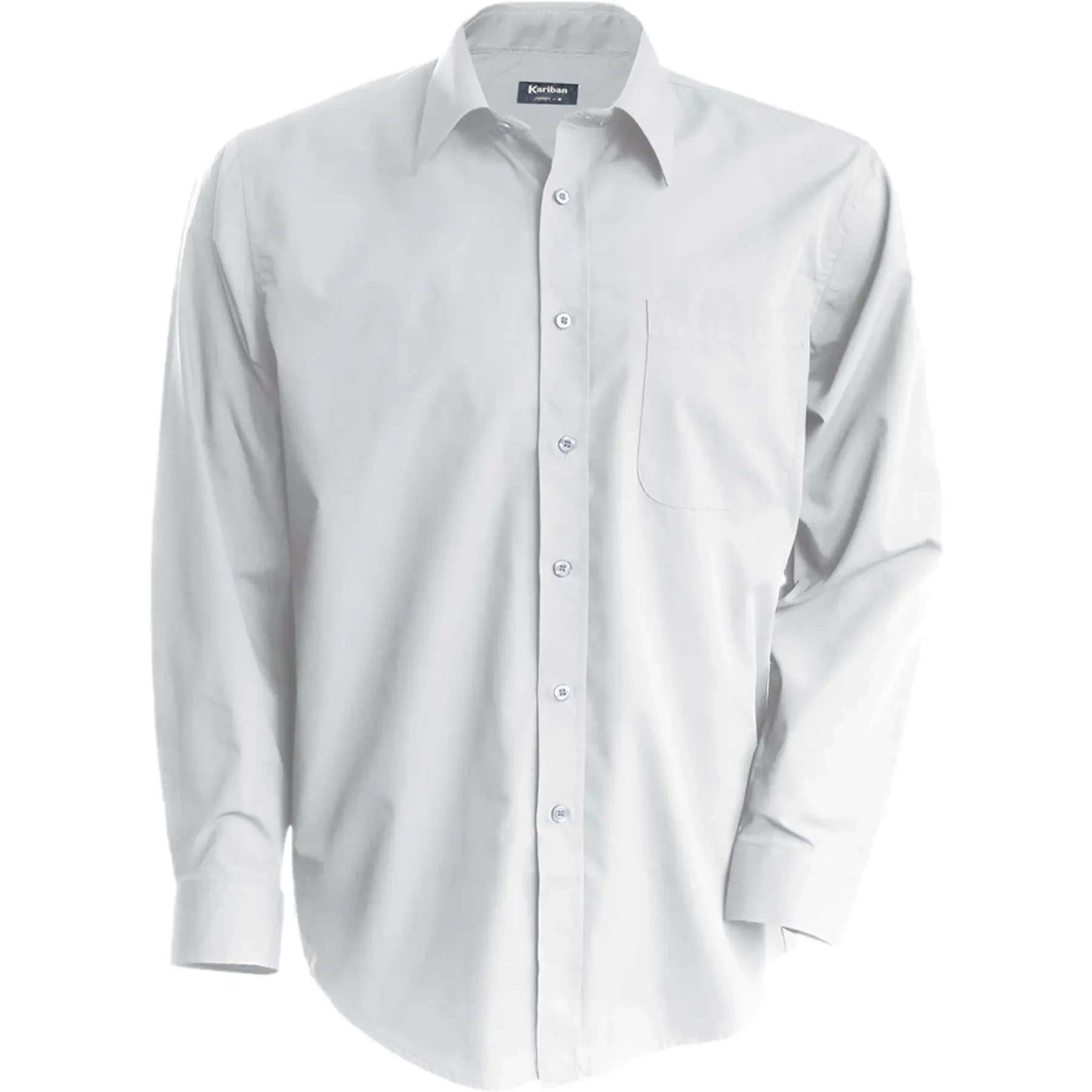 65% polyester / 35% coton. Tissu popeline. Entretien facile. Pointe de col baleinée. Boutons ton sur ton. Poche côté gauche poitrine à angles arrondis. Empiècement dos double. Finition coutures rabattues. Poignet réglable à angles arrondis avec patte de manche capucin boutonnée. 2 boutons de rappel.